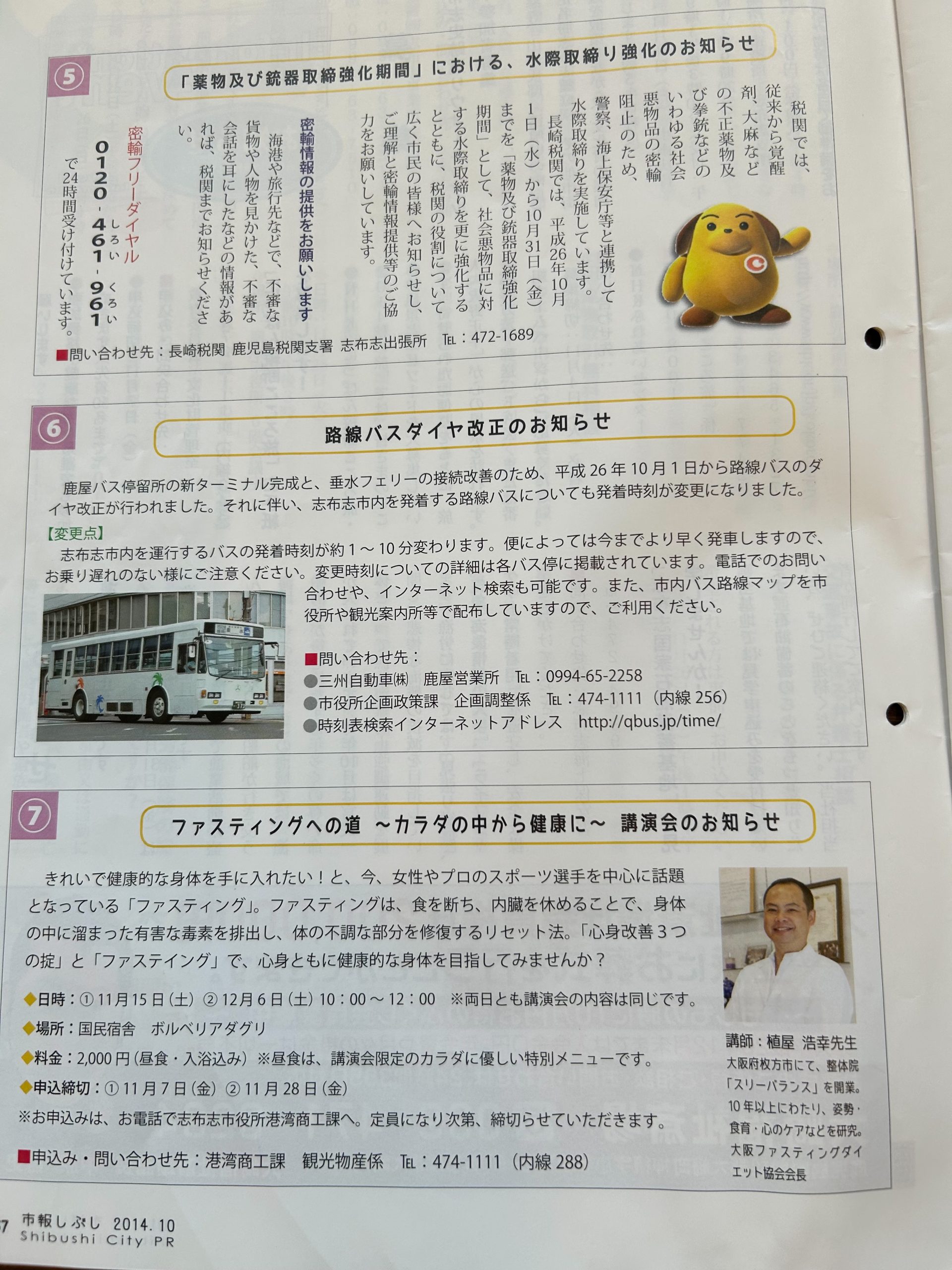 2014年10月9日 しぶし市報(37P)に掲載されました